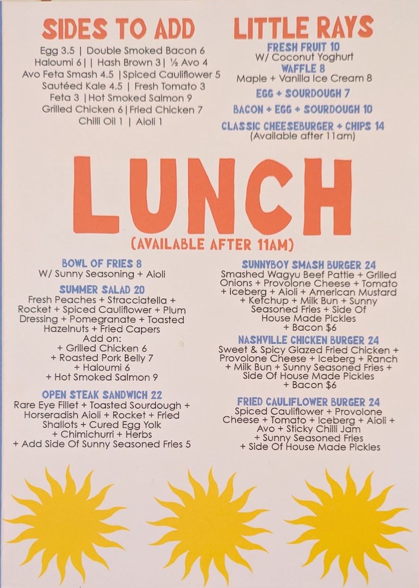 Sunnyboy Espresso Menu